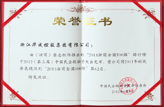 華成集團以穩(wěn)健的發(fā)展和雄厚的實力,連續(xù)多年被評為中國民企500強,浙商全國500強,浙江省百強企業(yè)